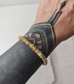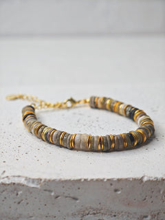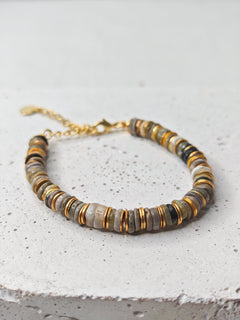 We captured this feeling with agate beads in soft natural tones and shiny, 18K gold-plated brass elements. Handcrafted by hand, each bracelet is a unique piece – stylish, earthy, and with a true boho spirit.