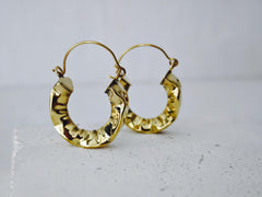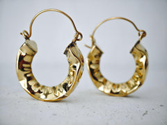 Creolen aus Messing, Strukturierte Statement Ohrringe 30mm, Knitter Optik