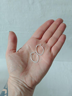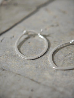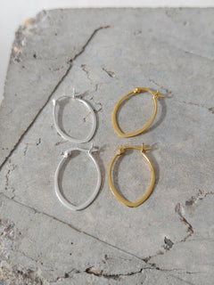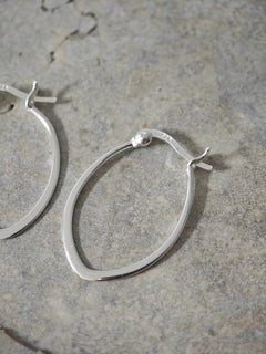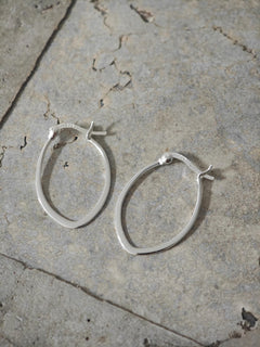 Diese kleinen, flachen und ovalen Creolen aus 925 Silber brechen bewusst mit der klassischen runden Form. Die leicht tropfenförmige Silhouette verleiht dem Design eine grafische Klarheit und einen modernen, urbanen Look.