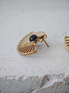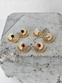 Die Sol & Stone Ohrstecker verbinden warm schimmerndes, goldfarbenes Messing mit natürlichen Edelsteinen und bringen minimalistischen Schmuck mit kraftvoller Ausstrahlung zusammen.