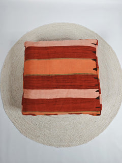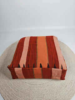 Die lebendigen Streifen in warmen Rosa-, Orange- und Erdtönen verleihen jedem Raum sofort eine gemütliche, entspannte Atmosphäre. Ob im Wohnzimmer, Schlafzimmer oder Leseecke – dieses Bodenkissen passt sich mühelos jedem Interieur an und setzt einen stilvollen Akzent mit Boho-Vibes.