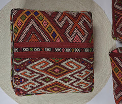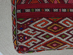 Marokkanischer Pouf, Berber Bodenkissen Rot Burgundy, Boho Sitzkissen aus Wolle, Kelim mit geomerische Amazigh Muster, handarbeit