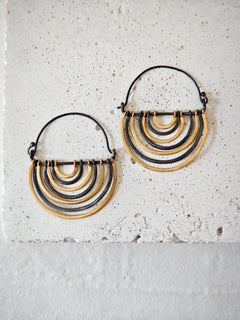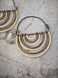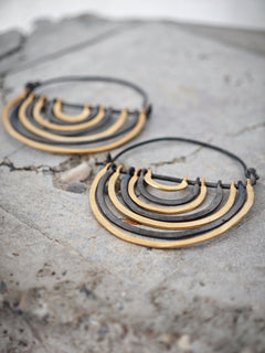 Minimalistisch und doch auffällig – diese handgefertigten Ohrringe verbinden klares Design mit edlen Materialien. Gefertigt aus 925er Sterlingsilber, veredelt mit schwarzer Rhodinierung und 18K Vergoldung, entsteht ein spannender Kontrast aus mattem Schwarz und glänzendem Gold.