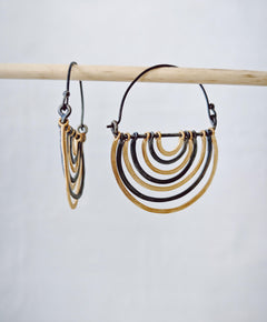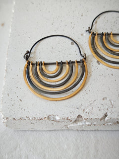 Minimalistische schwarz goldene Regenbogen Ohrringe aus schwarz rhodiniertem und vergoldetem 925 Silber